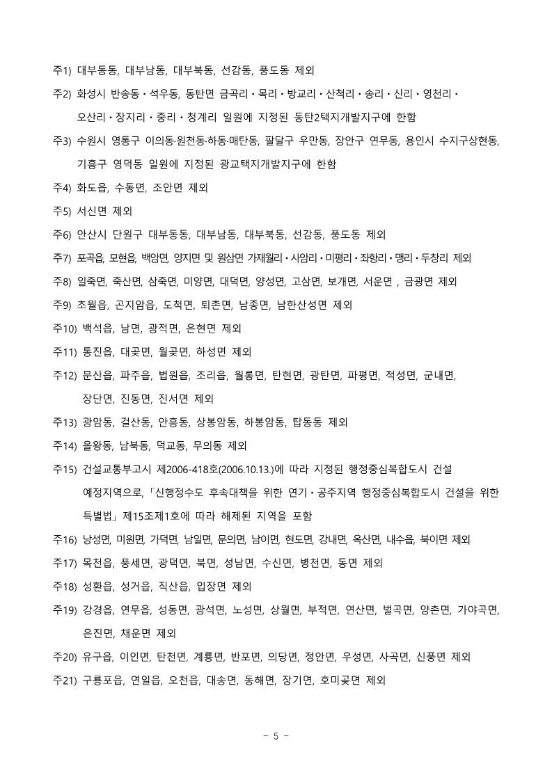해제 대상지역은 안성, 평택, 동두천, 양주, 파주입니다.